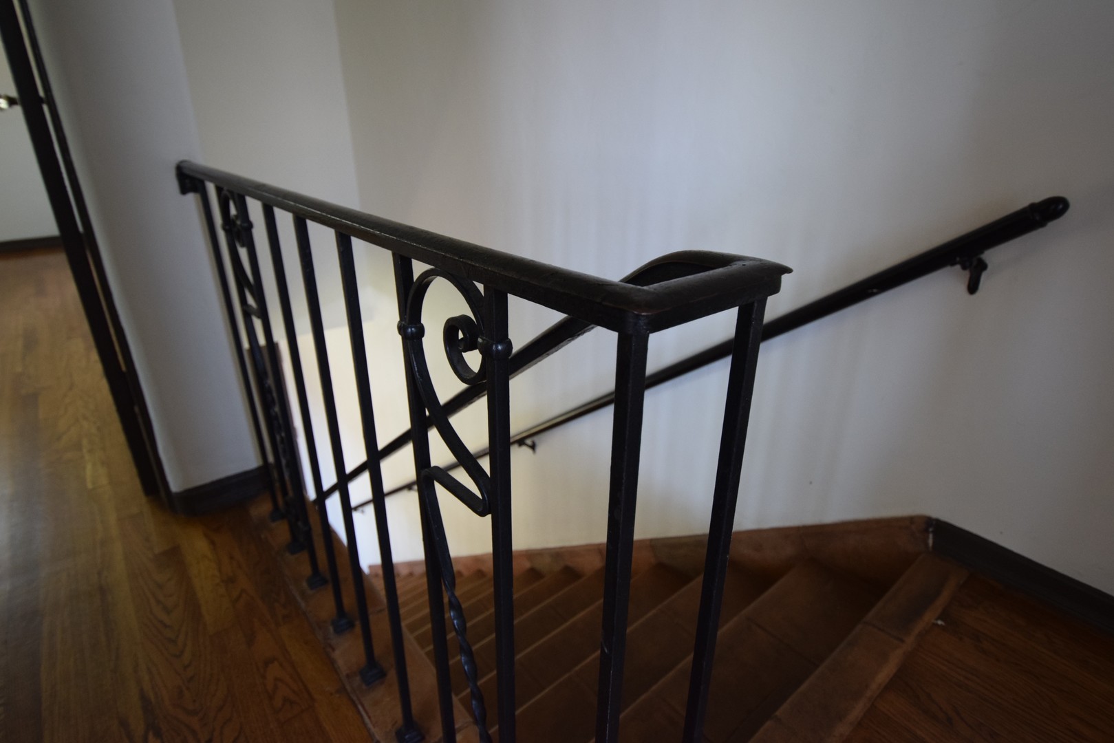 Indulge in the charm of two-level townhouse living, where every detail has been carefully curated for your comfort and style. Step onto the original hardwood floors that echo with character, leading you to the kitchen and stairs adorned with tasteful tile flooring. Marvel at the well maintained vintage tile counters complemented by a stylish tile backsplash, showcasing a stainless steel refrigerator.