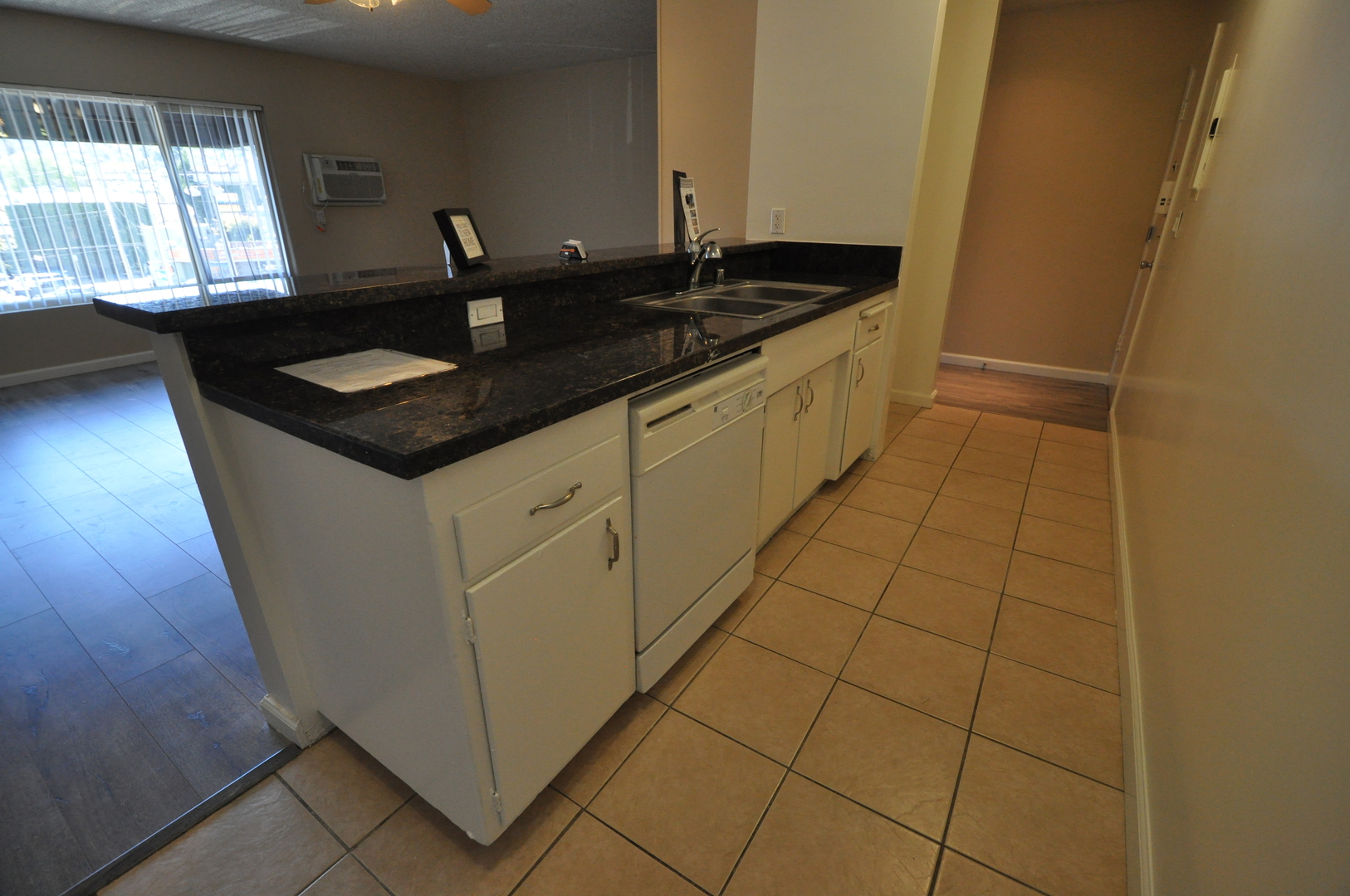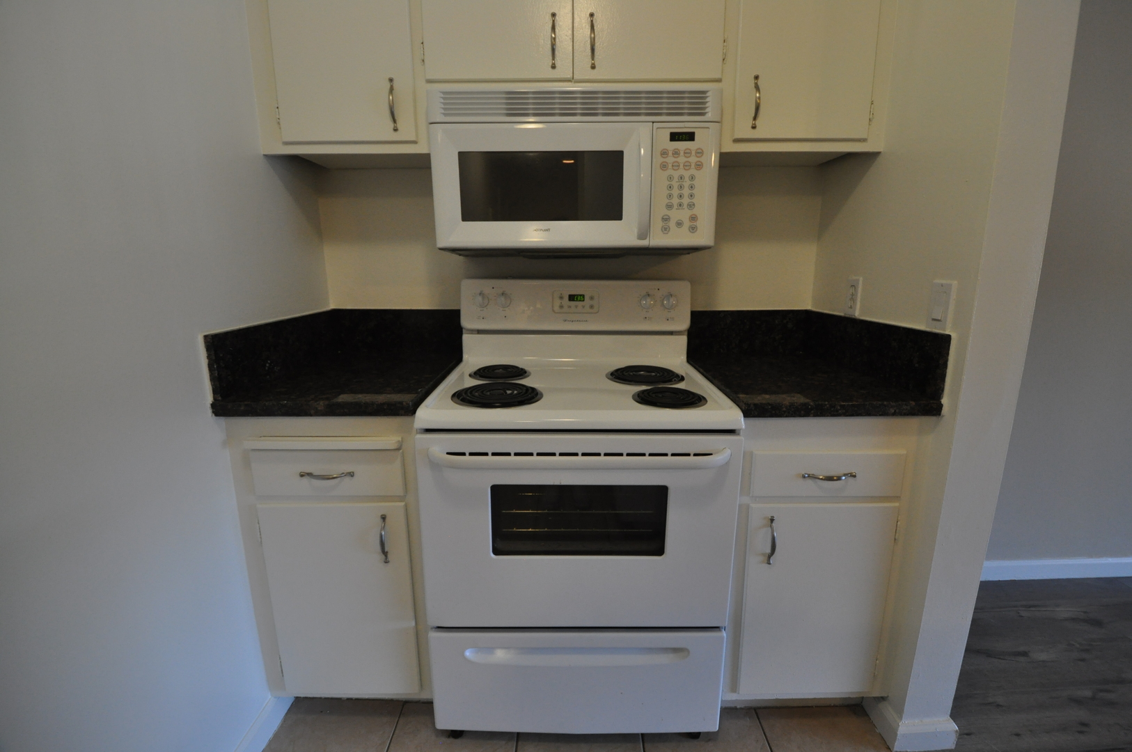 Featuring a third-floor unit, whitewash hardwood-style floors, rose granite counters, and essential appliances including a stove, dishwasher, and microhood, this apartment provides both comfort and convenience. The kitchen and bathroom showcase elegant tile flooring, while a large breakfast bar offers the perfect spot for casual dining.