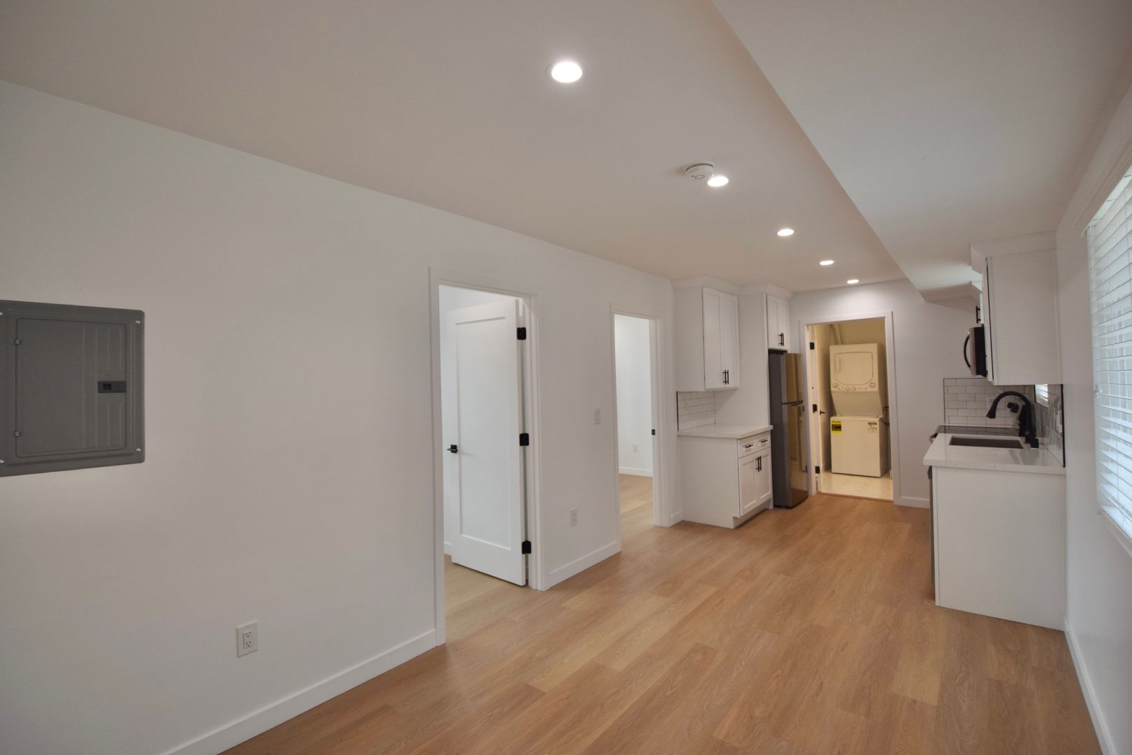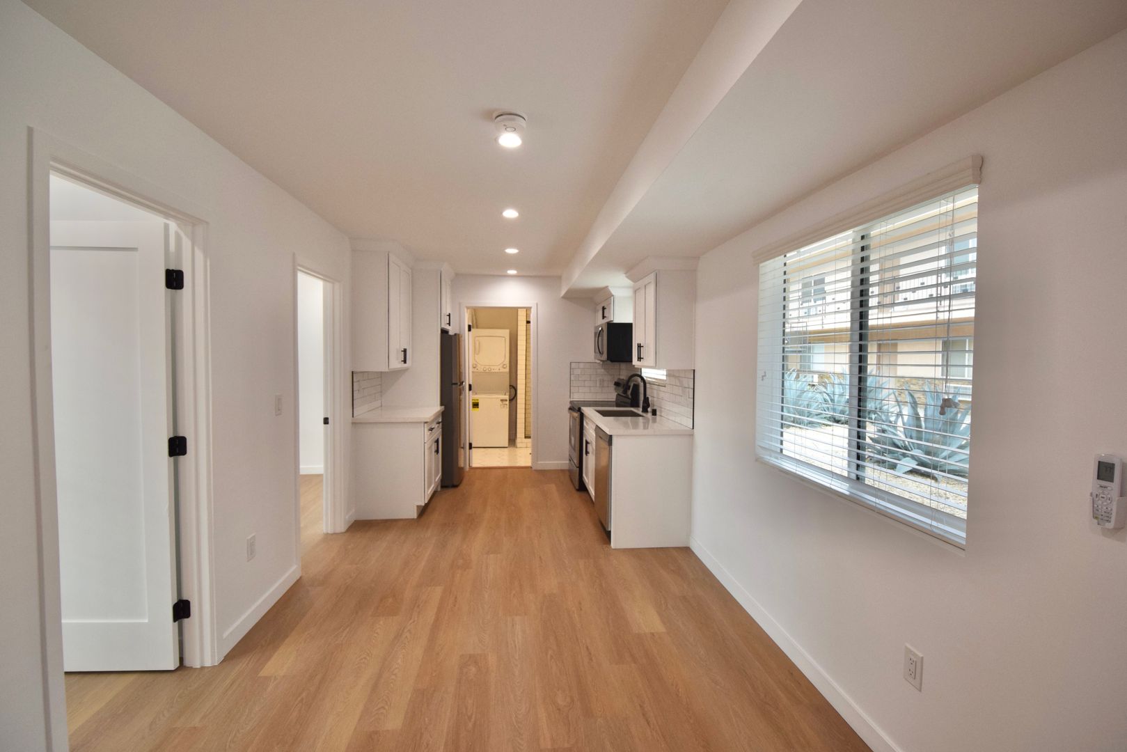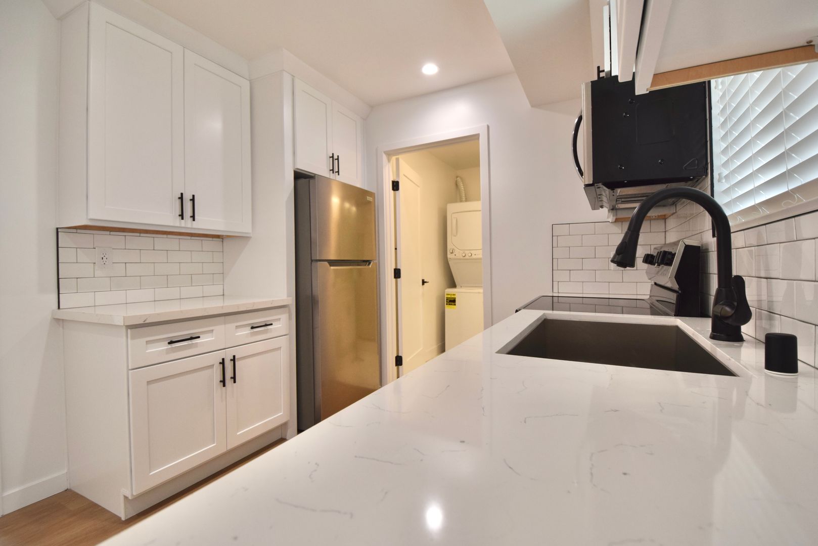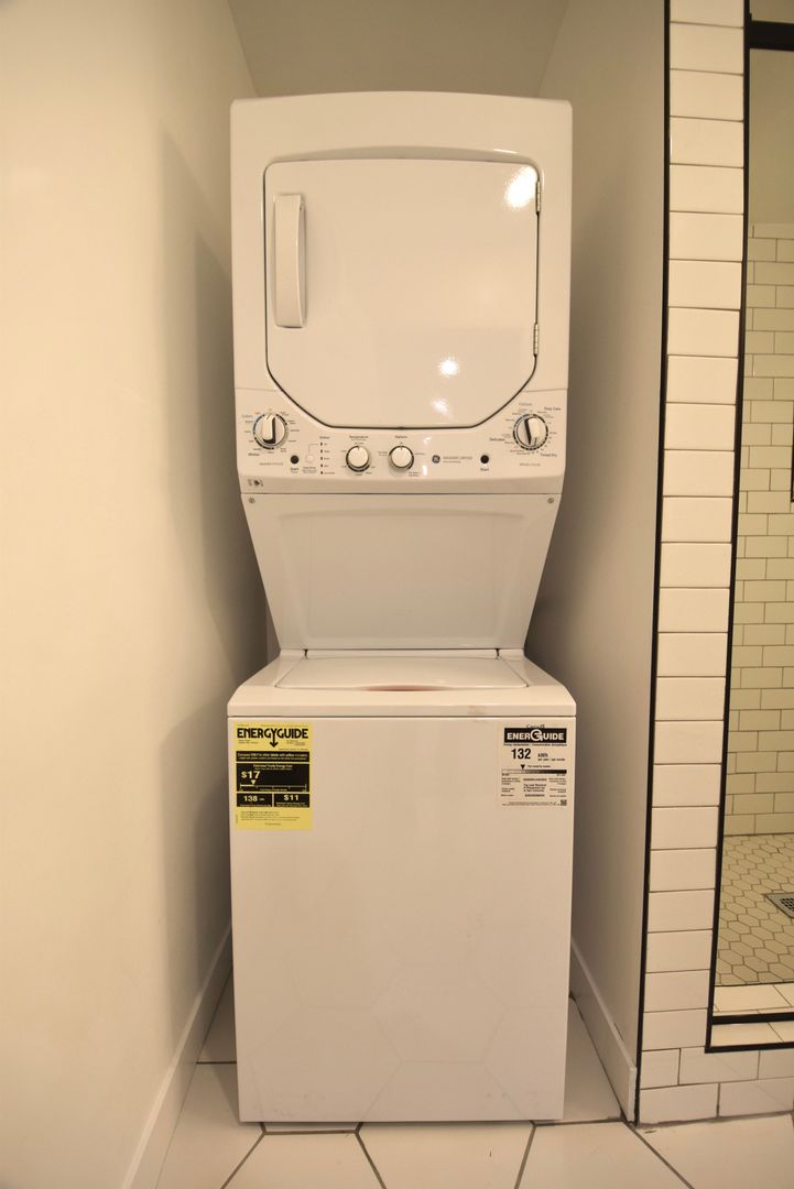 Situated on the first floor, this apartment boasts Calcutta quartz counters in both the kitchen and bath, along with subway tiled kitchen backsplashes and a subway tile shower. Mirrored closet doors with built-in shelves provide ample storage, complemented by plenty of cabinet space. Plus, stay comfortable year-round with split AC. The in unit washer and dryer makes laundry a breeze.