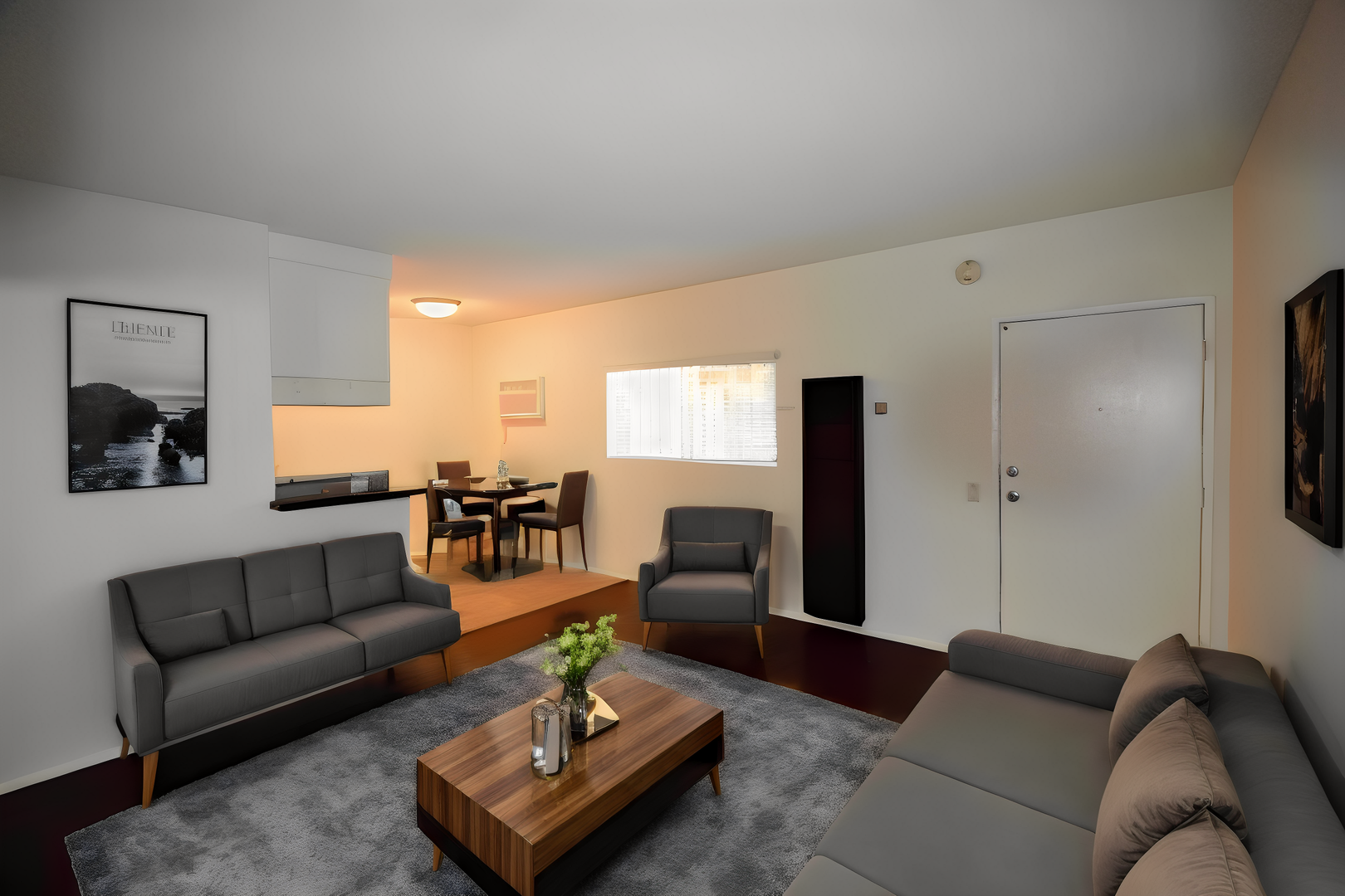 Discover your new oasis in our spacious Lake Balboa 1 Bedroom apartment! Nestled in a vibrant neighborhood, our top-floor unit offers a tranquil retreat with modern comforts. Step inside and be greeted by the elegance of hardwood-style floors, beautifully complemented by granite counters in the galley kitchen.