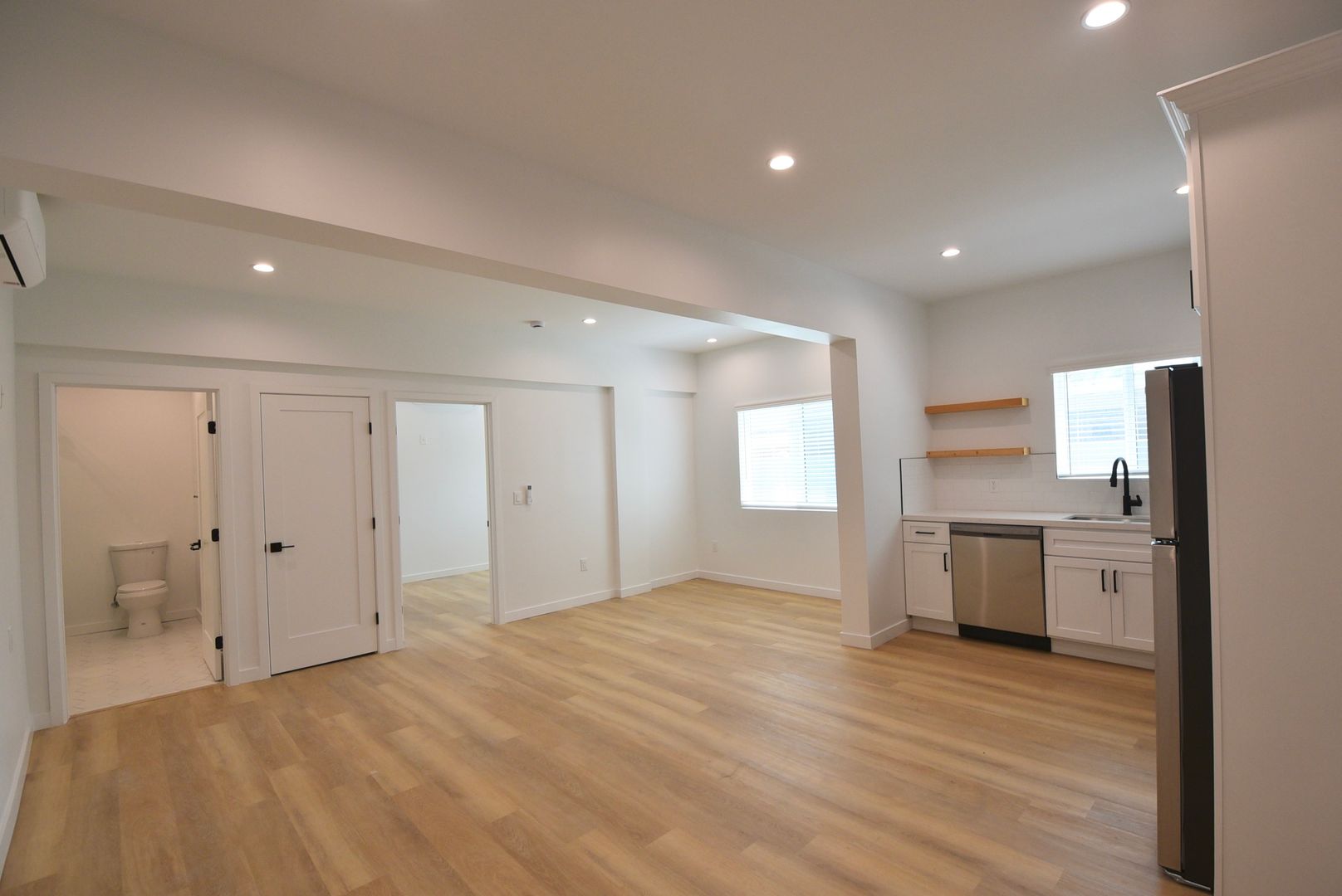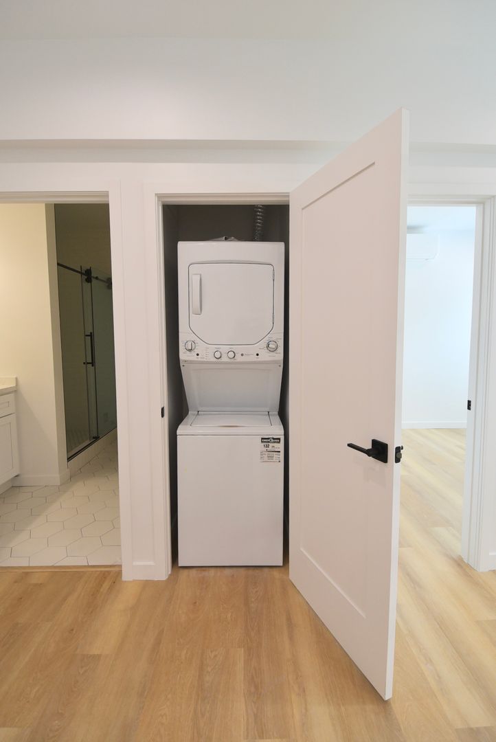 This bright and modern apartment offers natural light throughout, with a spacious living room perfect for relaxing or entertaining. The kitchen features stainless steel appliances, generous counter space, and plenty of storage to keep everything organized. Enjoy the sleek walk-in shower, in-unit washer and dryer, and a quiet end-unit location. Mini split A/C keeps you cool year-round with efficient, zoned comfort.