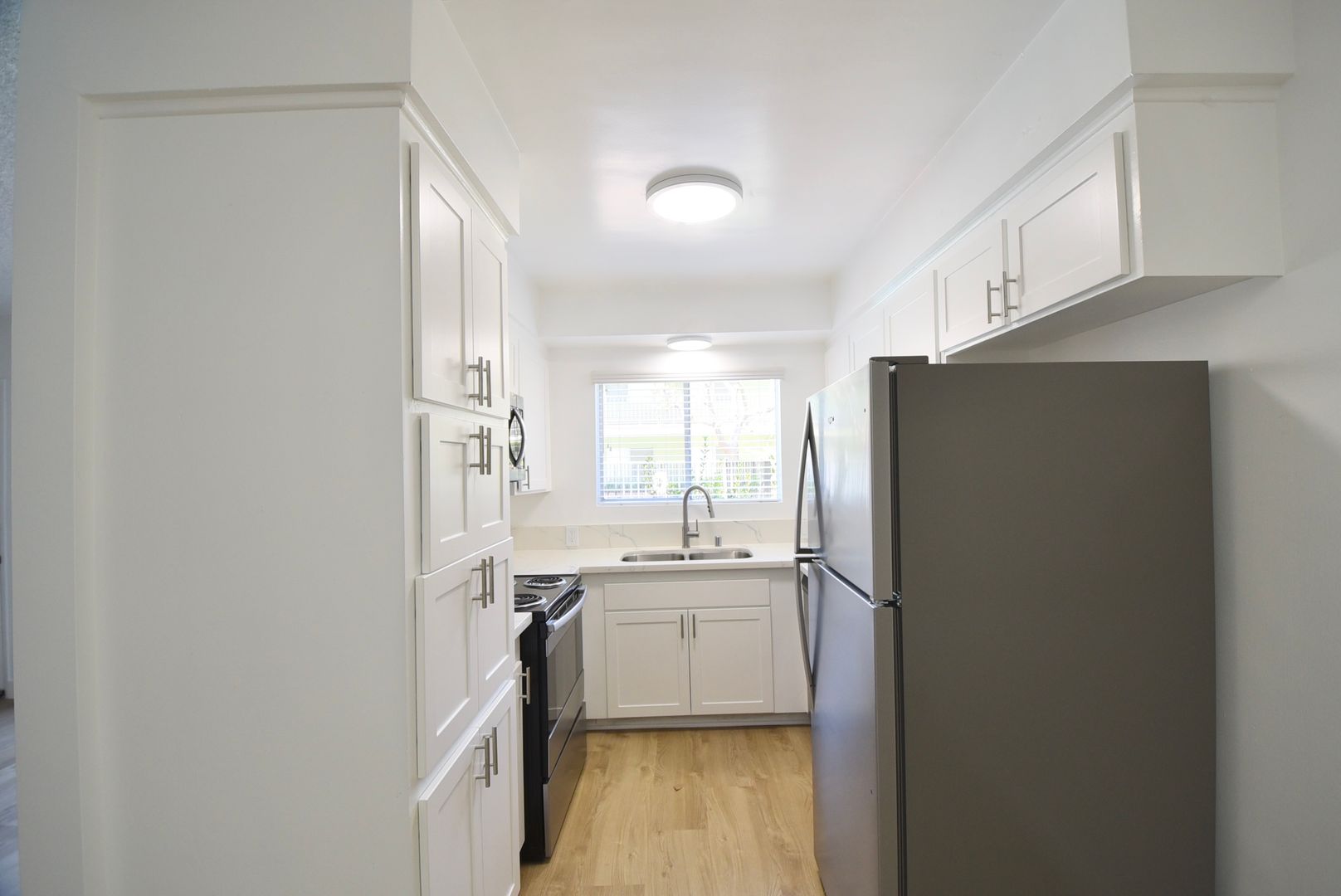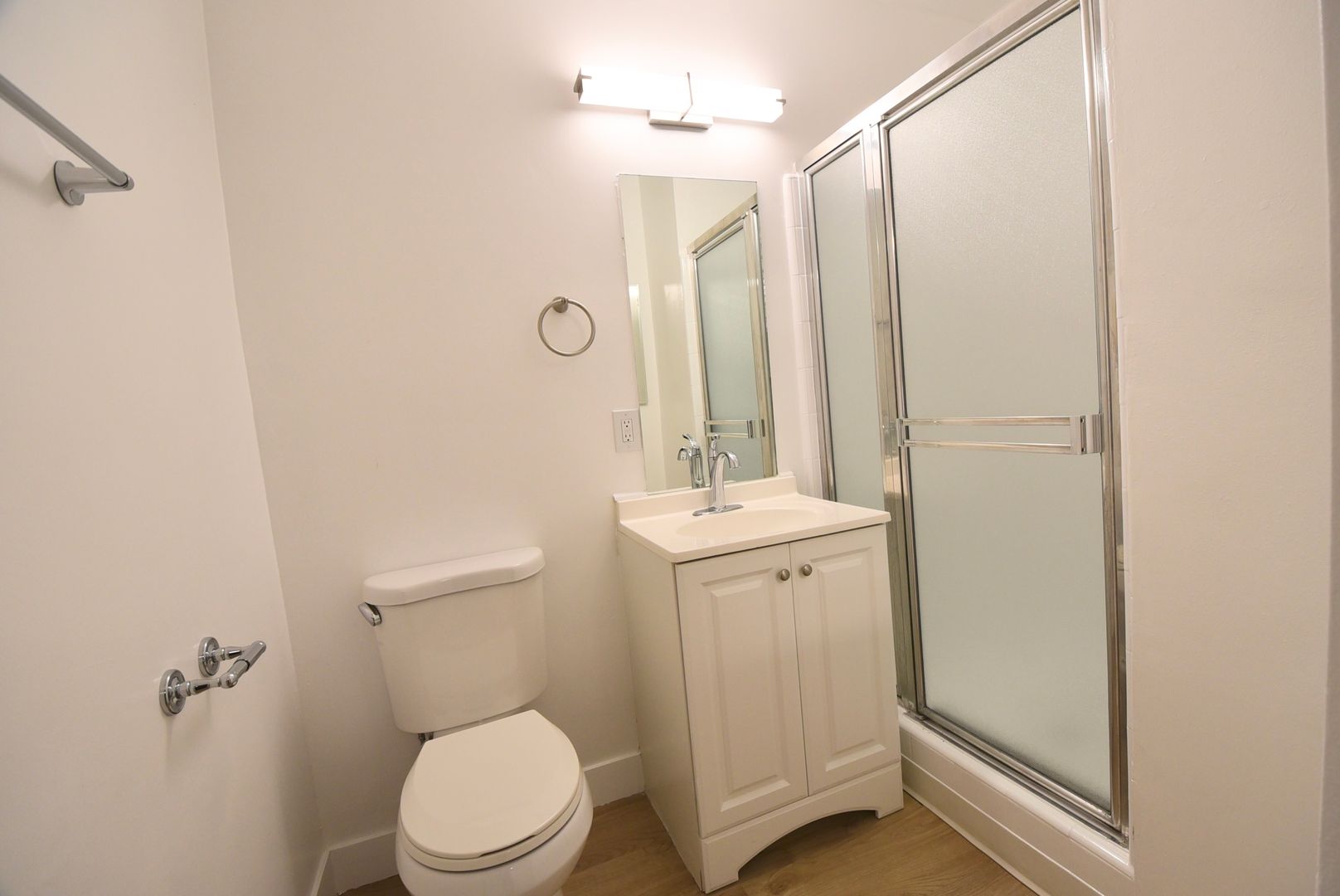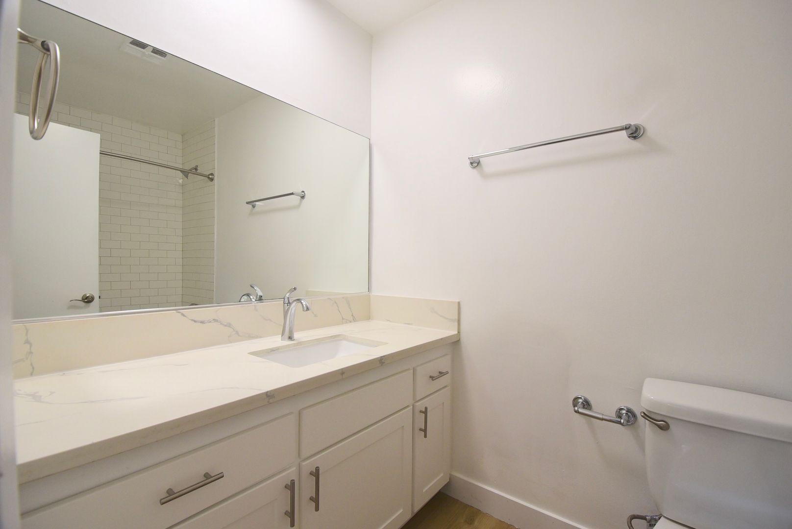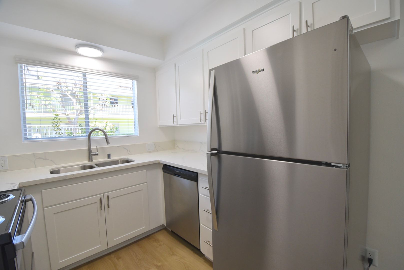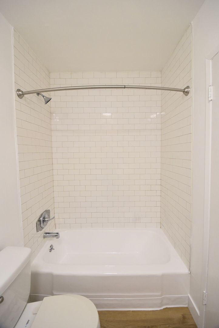 This remarkable apartment exudes spaciousness and charm, featuring exquisite wood flooring throughout, a generously-sized open layout, and ample closet space. Revel in the comfort of hardwood-style floors, Calcutta marbleized quartz counters, and a stylish subway-tiled bath/shower. The kitchen is equipped with stainless steel appliances, offering convenience and elegance.