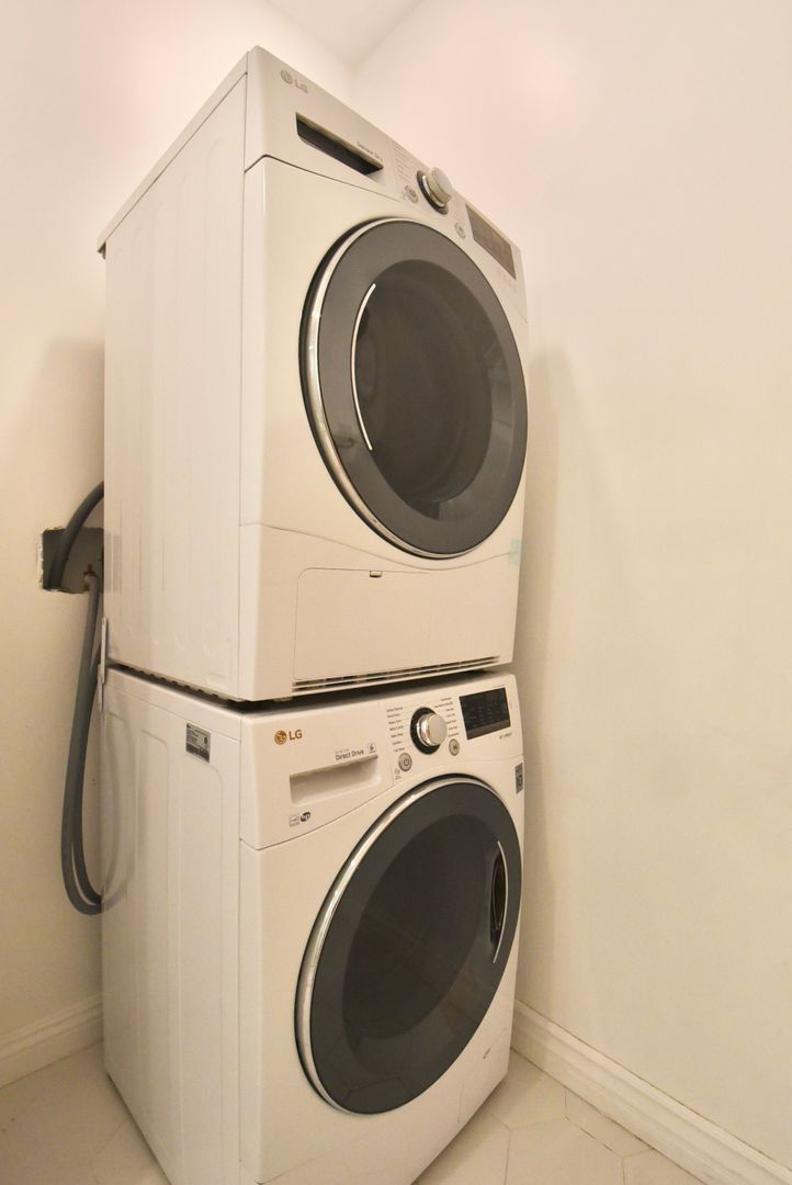 The bathroom includes the added convenience of an in-unit washer and dryer, and the bedroom features a mirrored wardrobe closet for easy storage. Step out onto the balcony to enjoy views overlooking the sparkling pool—perfect for relaxing mornings or unwinding at the end of the day.