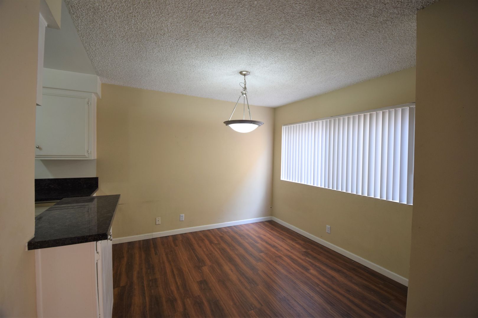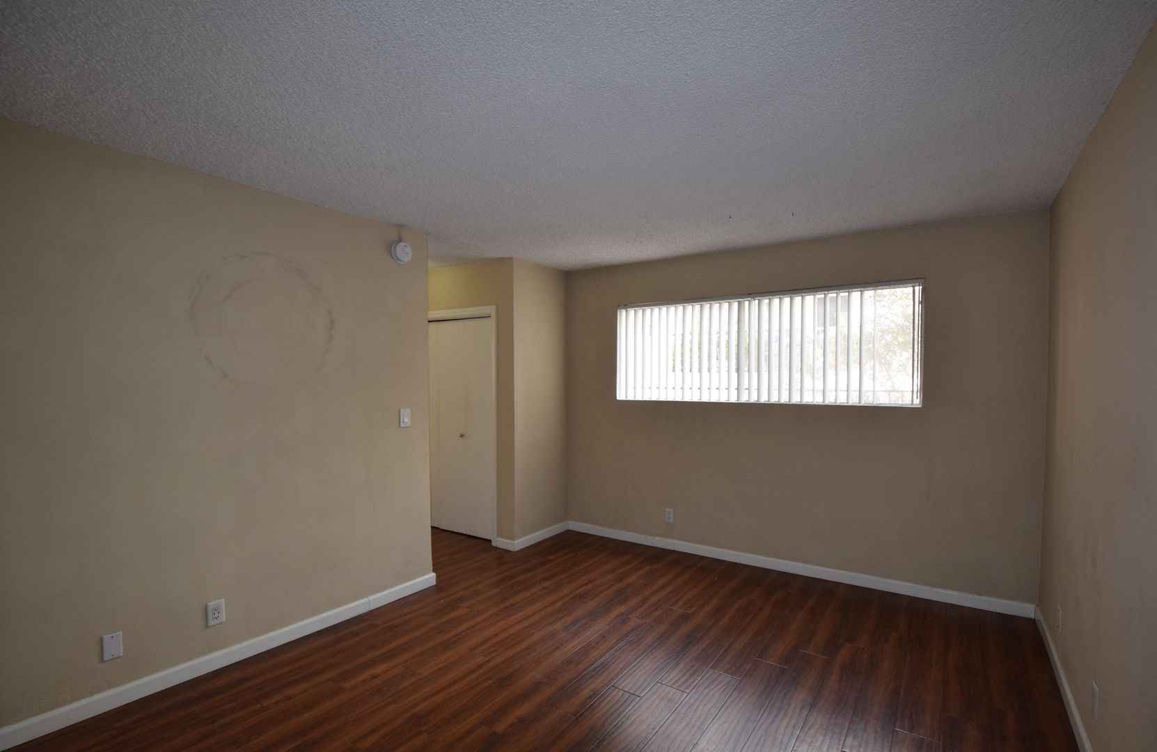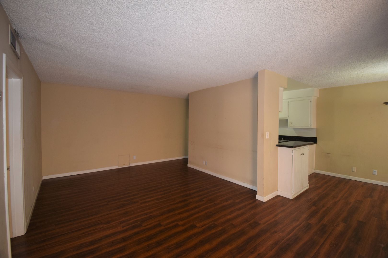 Inside, this first-floor home features hardwood-style floors throughout, complemented by rose granite countertops and a stylish subway tile backsplash in the kitchen. The layout is designed for both everyday living and entertaining, complete with a wet bar and generous living space that flows seamlessly to your private patio. Storage is plentiful with a large walk-in closet at entry, expansive wardrobe closets, linen cabinets, and dual closets in the primary bedroom. Central air and heat provide year-round comfort, while thoughtfully selected appliances including an electric stove, microwave hood, dishwasher, and refrigerator complete this inviting two bedroom apartment in Sherman Oaks.