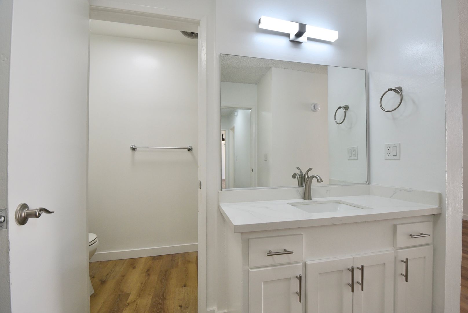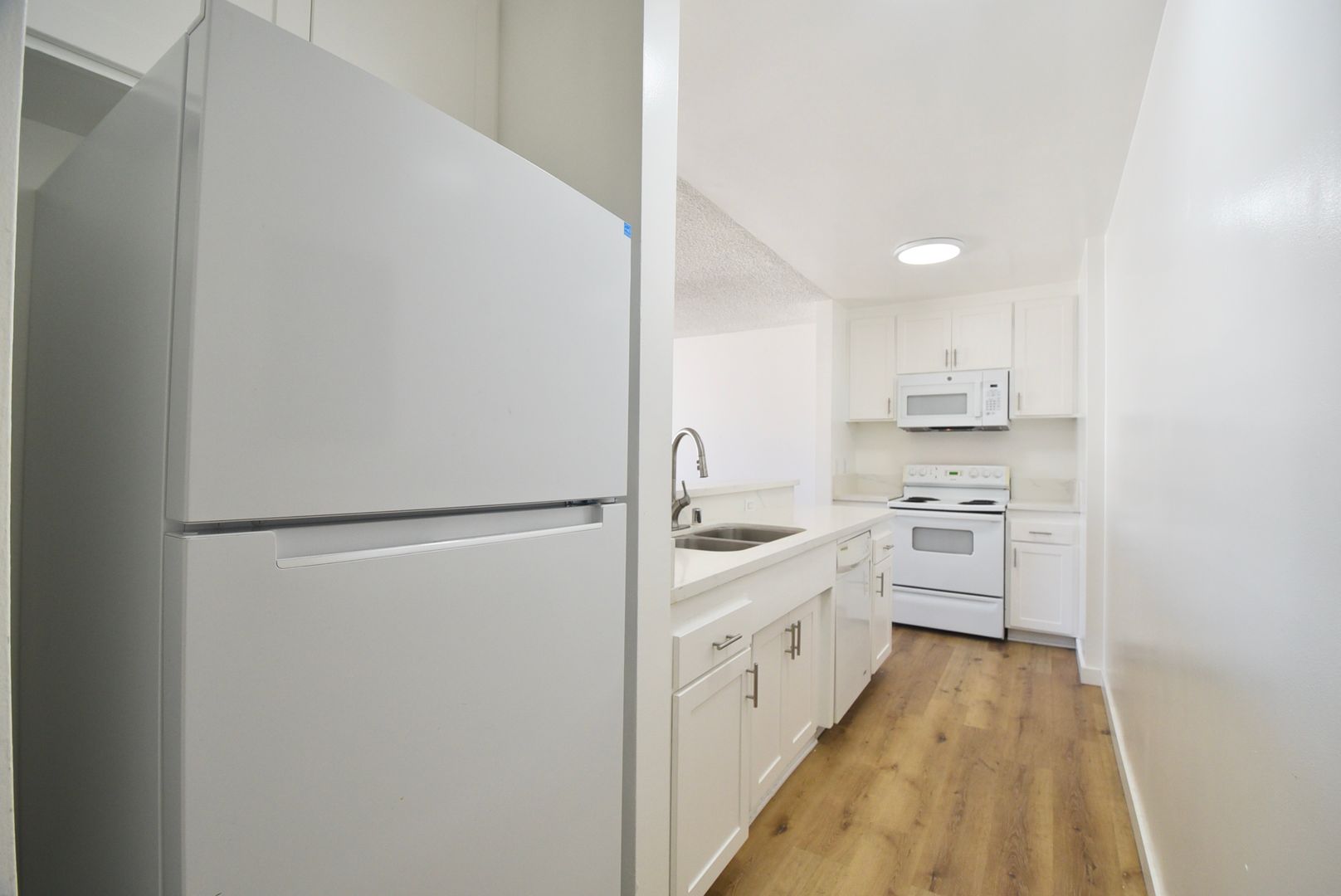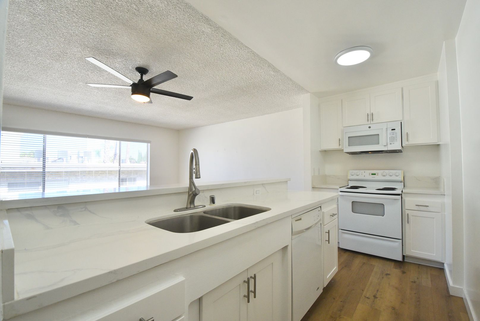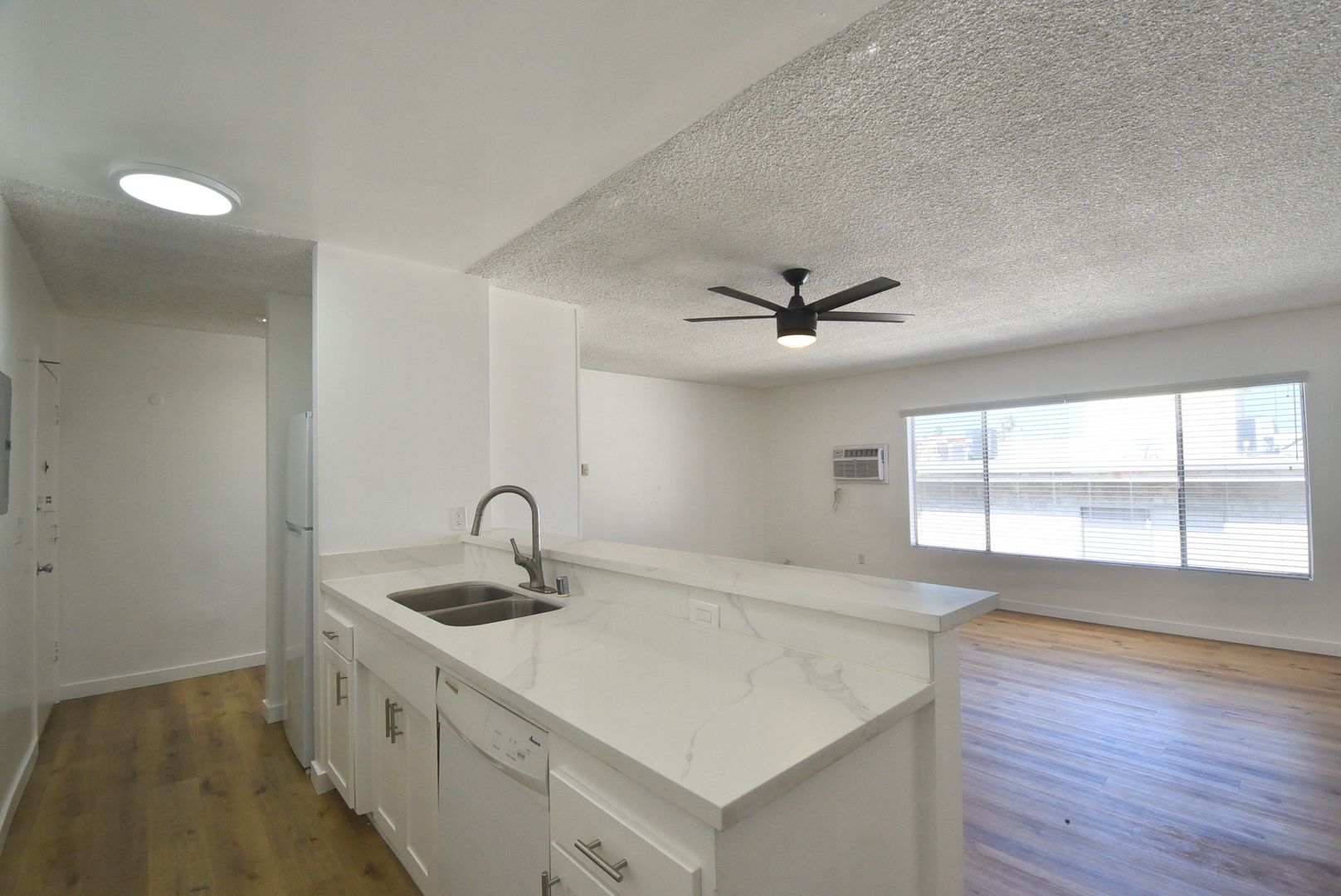 Discover the epitome of modern living in the heart of Sherman Oaks with this exquisite 2-bedroom, 2-bathroom apartment. Step inside to be greeted by the elegant hardwood-inspired floors that grace the entire living space. The kitchen is a chef's dream, featuring sleek calacatta marble quartz counters and top-of-the-line appliances. Mirrored closet doors enhance the spacious bedrooms which comfortably fit queen or king sized beds.