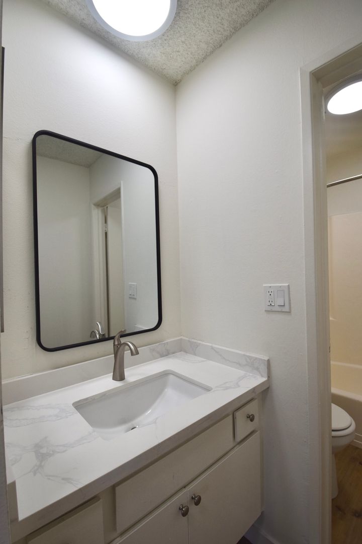 Notable highlights of this apartment include its top-floor location, stylish old english hardwood-style flooring, and modern calacatta marble countertops. The kitchen is equipped with essential appliances such as a stove and refrigerator. Residents will appreciate the breakfast bar, additional in-unit storage, and the comfort provided by wall-mounted air conditioning. Pet-friendly policies and onsite laundry facilities further enhance the appeal of this residence.