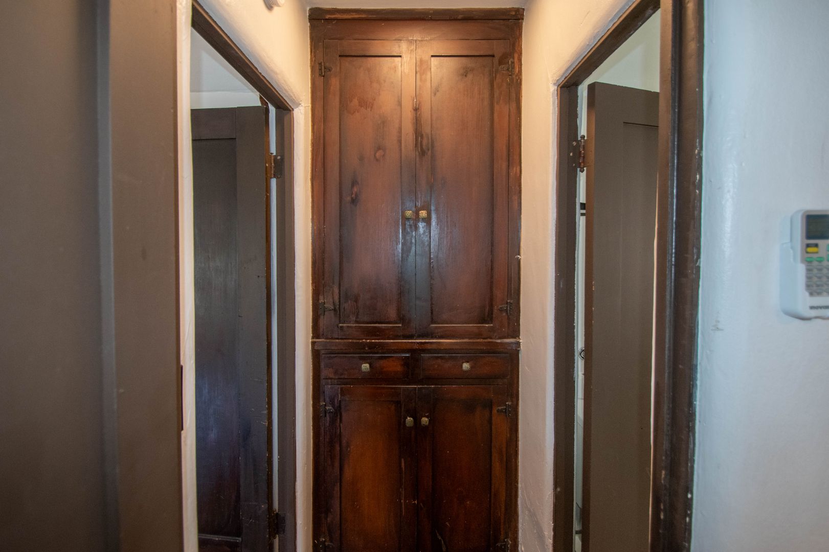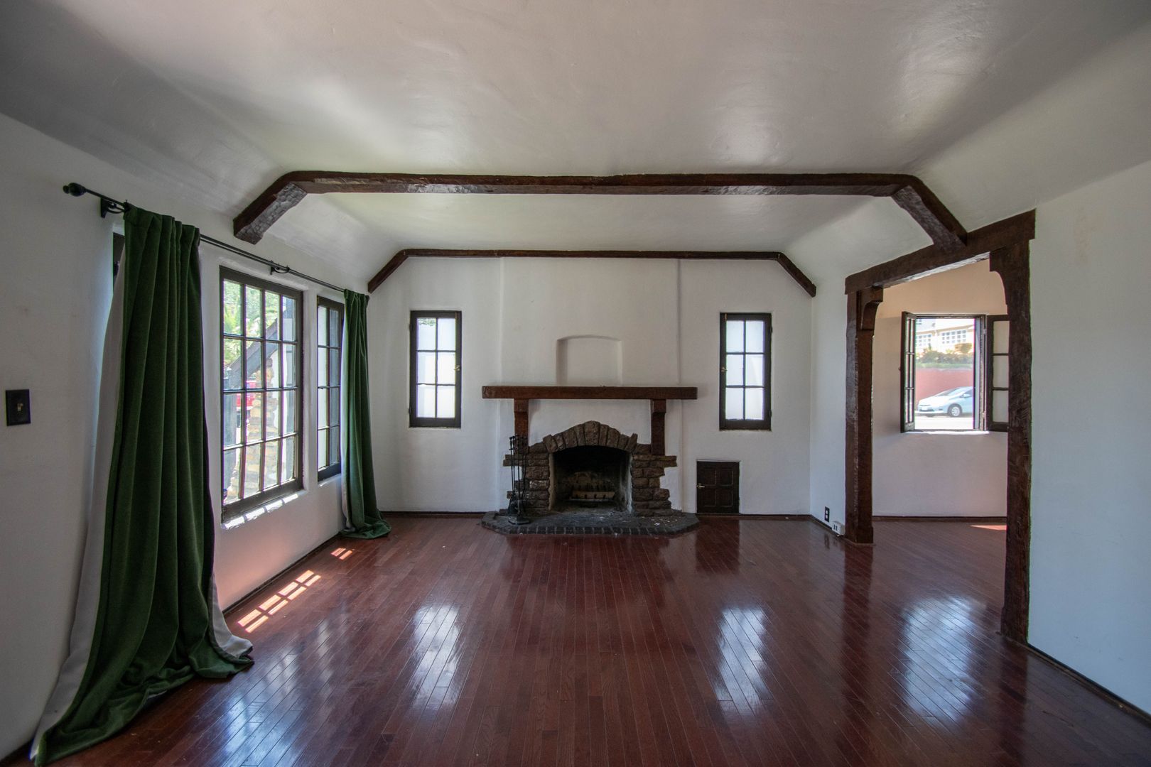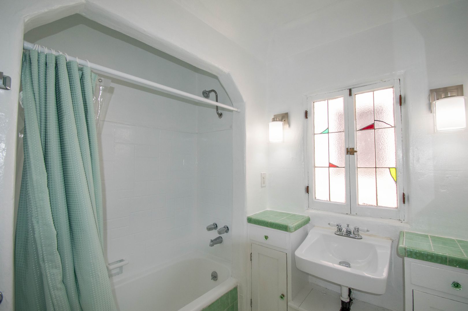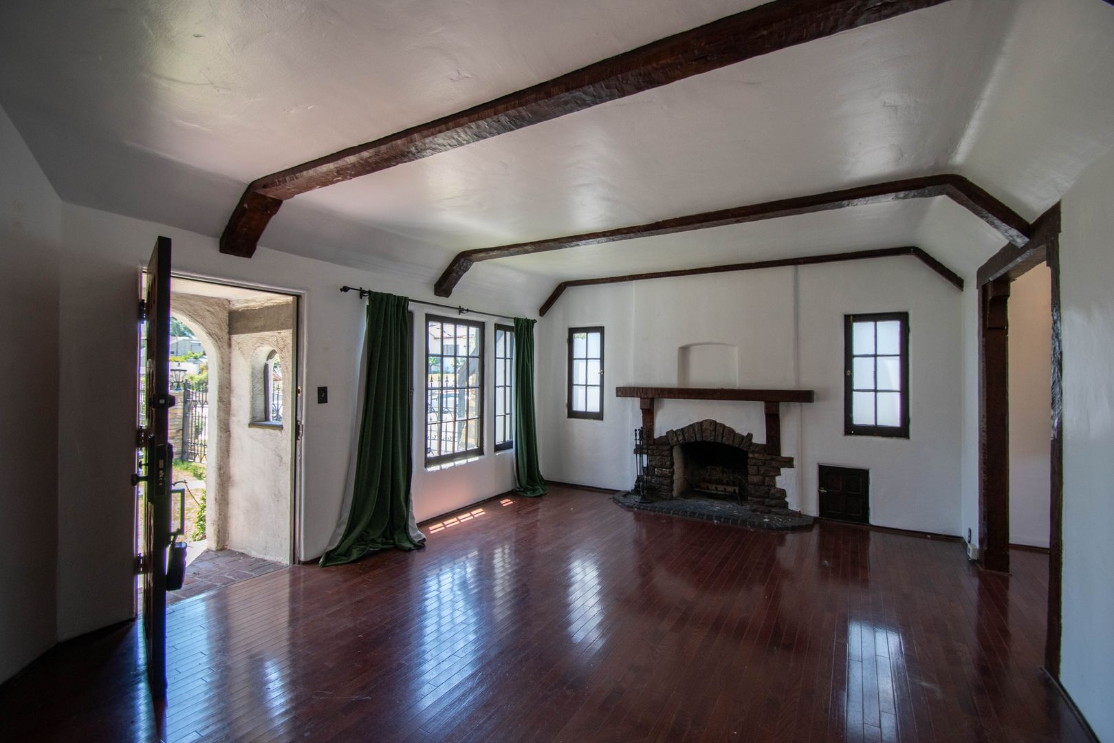 Inside, this charming standalone cottage features original hardwood floors that highlight its vintage appeal, paired with thoughtful updates for modern living. The layout includes a cozy living space anchored by a wood-burning fireplace, along with dual entry points that enhance both flow and privacy. The kitchen blends retro style with functionality, offering black Formica countertops, a white tile backsplash, and a full set of appliances including a gas stove and refrigerator. Additional features like a washer and dryer combo, hall linen storage, and both walk-in and secondary wardrobe closets make this a highly functional one bedroom apartment in Echo Park. A mini-split system in the bedroom provides efficient comfort, while unique tile finishes in the kitchen and bath add to the home’s distinctive character.