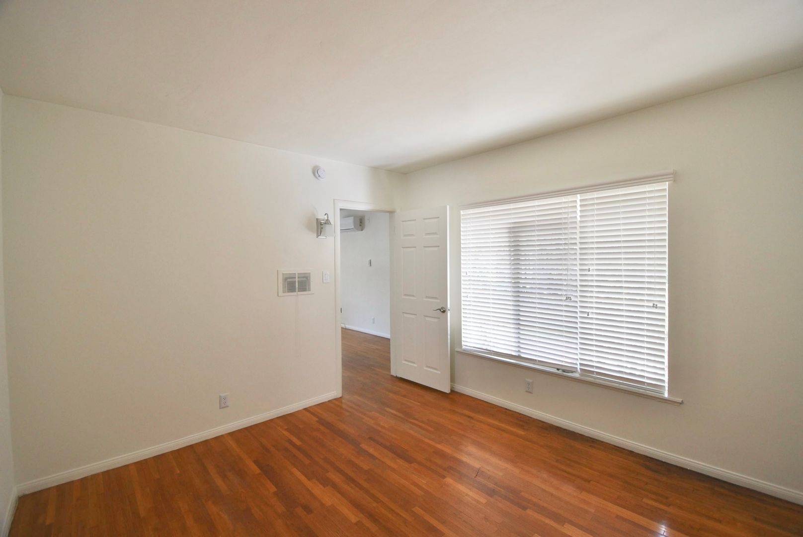 The bungalow-style apartment boasts timeless elegance with original hardwood floors and modern touches such as calacatta kitchen counters and hexagonal white tile flooring. The kitchen features black appliances and a walk-through design, while the bathroom is fitted with a sleek vanity. Washer/Dryer hook ups provide the option to make laundry day, a breeze. The spacious bedroom accommodates a king-size bed and offers ample closet and storage space. With dual entry, a mini-split A/C system, and a pet-friendly policy, this apartment combines comfort, convenience, and character. Enjoy the best of North Hollywood living in this charming, well-appointed home.