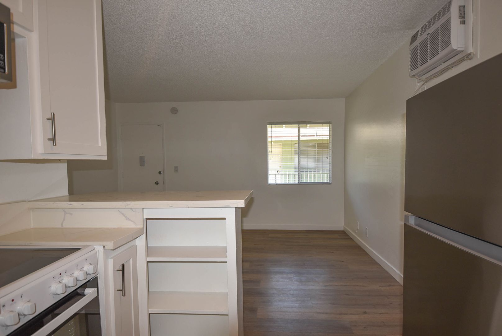 This remarkable apartment exudes spaciousness and charm, featuring exquisite wood flooring throughout, a generously-sized open layout, and ample closet space. Revel in the elegance of Calacatta marble quartz counters, and a stylish subway-tiled bath/shower.