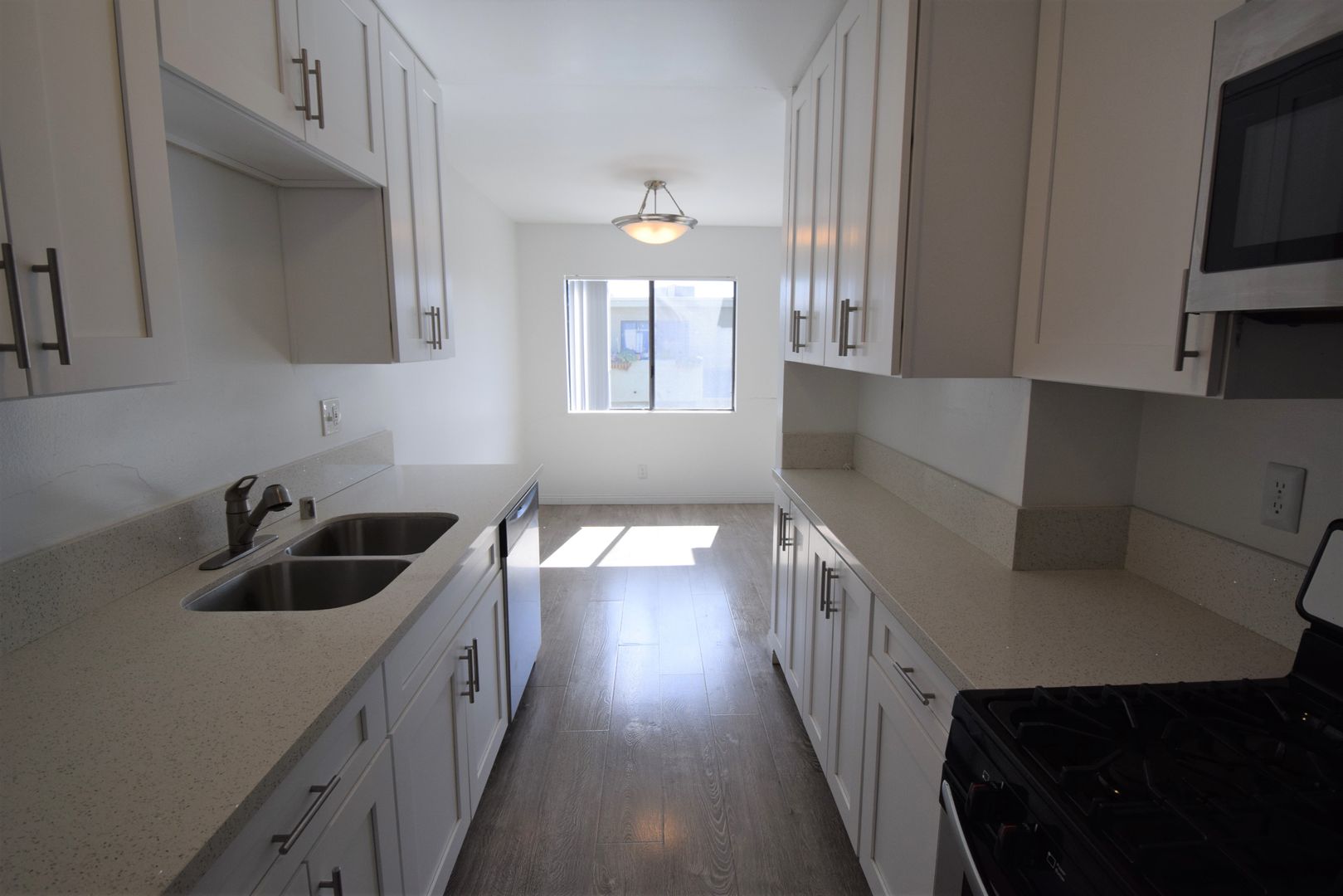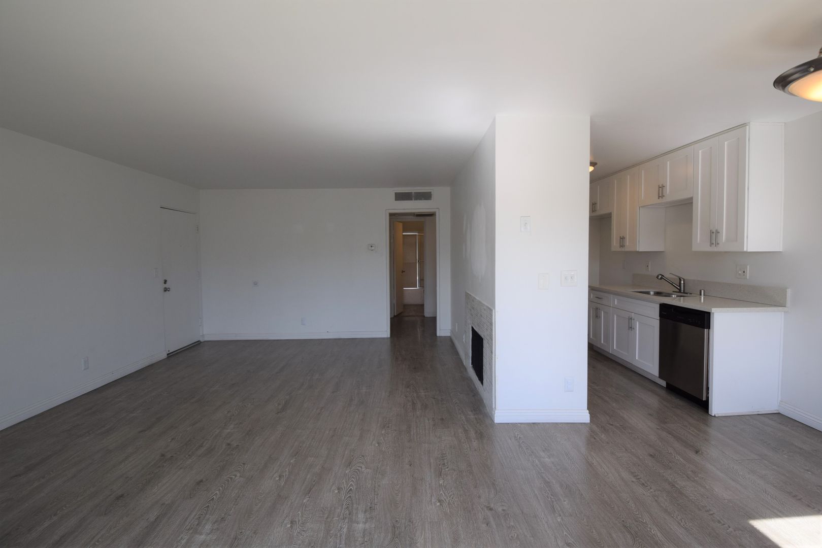 Welcome to the comfort and style of 15144 Burbank Blvd, a delightful 2-bedroom, 2-bathroom residence that redefines modern living. Step onto elegant english oak hardwood style flooring that adds warmth to the expansive living space, including a generously sized living room perfect for relaxation. Embrace the outdoors on your private patio or gather around the cozy fireplace for a tranquil evening. The well-appointed kitchen boasts a gas stove, dishwasher, and elegant quartz countertops, creating a perfect blend of functionality and sophistication.