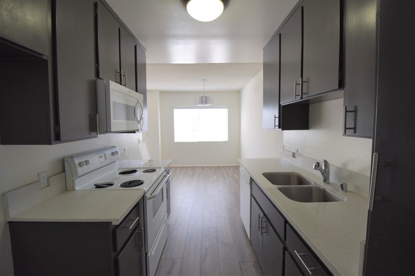 Welcome to your new home at 12241 Burbank, a charming apartment in the vibrant heart of Valley Village. This top-floor unit offers a perfect blend of style and comfort, featuring grey hardwood-style floors and bright, open spaces. The kitchen and bath are beautifully designed with crystal white quartz counters and classic subway tiles, creating a modern yet timeless feel.